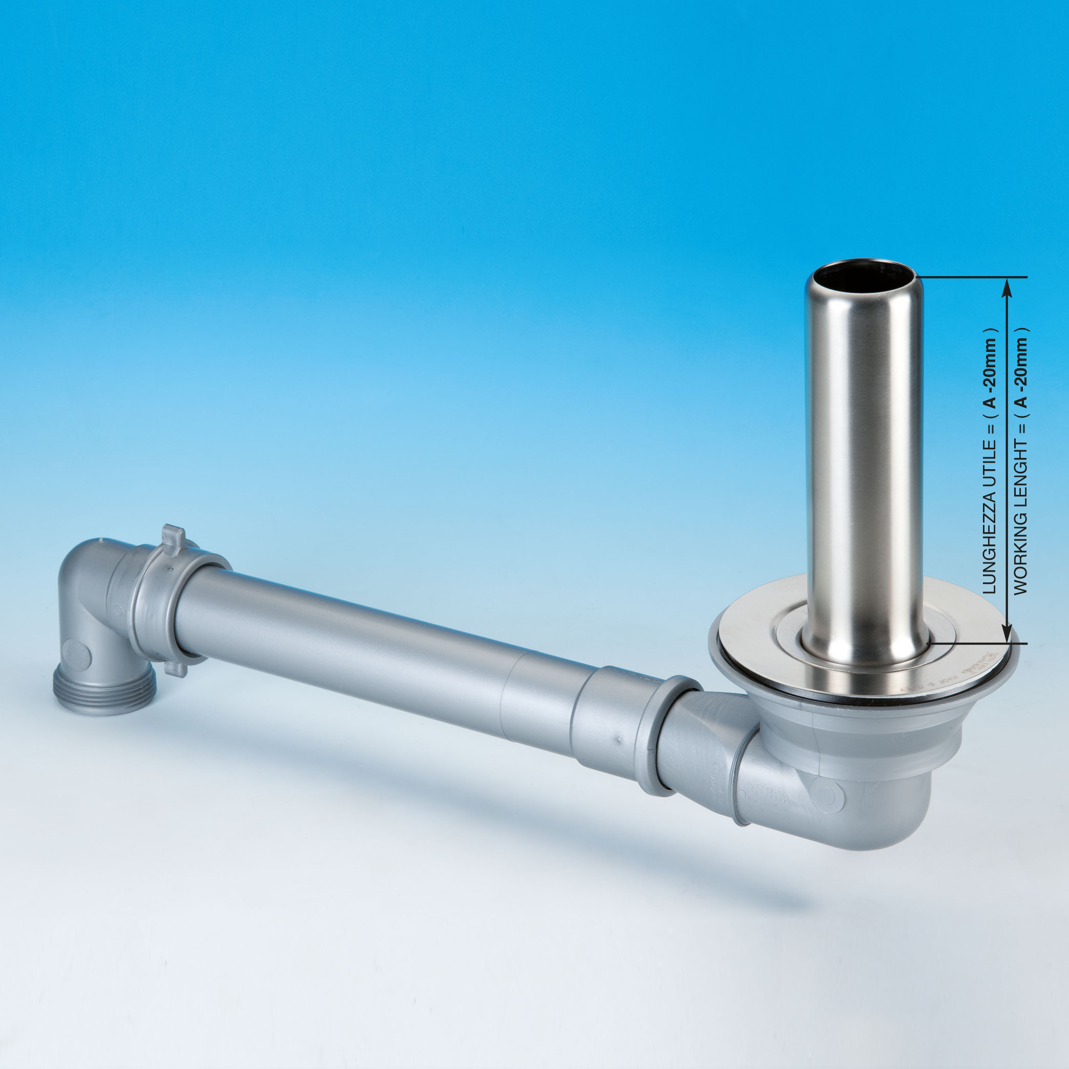 Raumsparstopfenventil mit Edelstahl Standrohr für Spülen mit Ø 90 mm Loch.