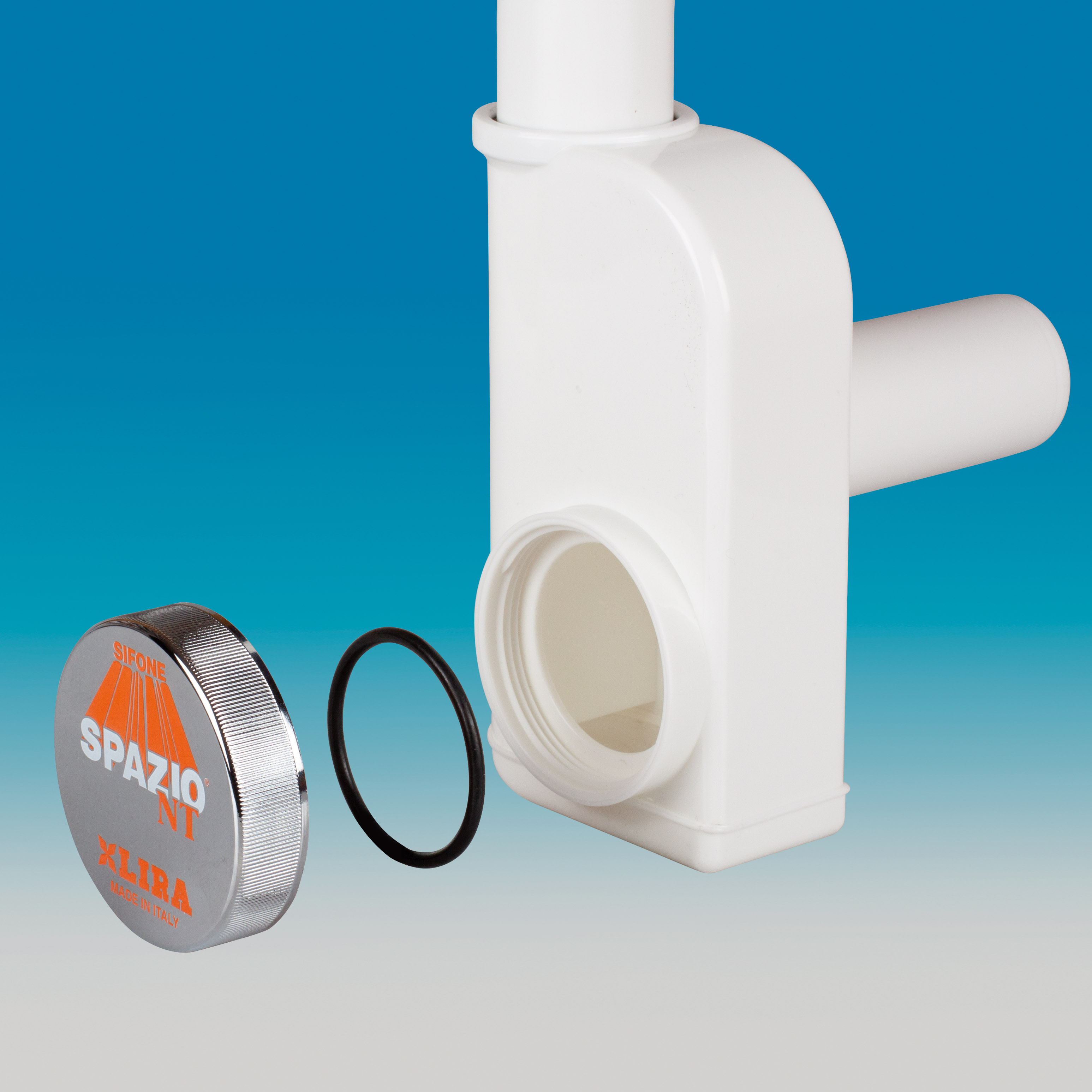 Siphon gain de place avec ouverture pour lʼinspection pour éviers avec un bassin